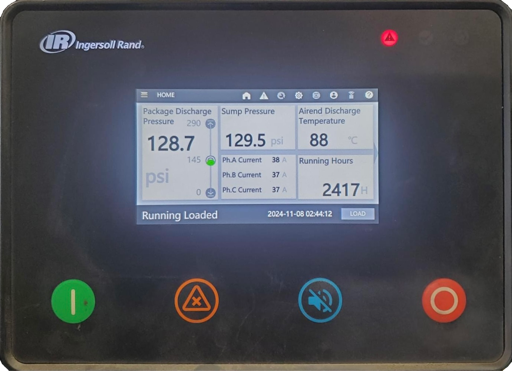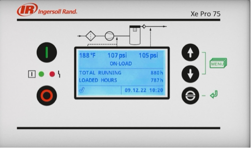 Hidden Right Button Hidden right button is located between the Auto Restart indicator and the Unloaded Stop button. To access unit must be in READY TO START or START LOCAL-REMOTE. Press the Load-Unload button once then press the hidden right button within 3 seconds. To exit press the Display Select button once or wait for 30 seconds. Menu allows changes to the machine configuration.